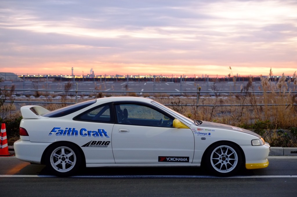 個人車はホンダビート、ホンダインテグラを経て2台目の[ホンダ インテグラ(DC2)]!黄色のラッピングが印象的な競技車両です。どうやらインテグラは好きだけど、最近はまたビートに乗りたい欲が出てきているとのこと。