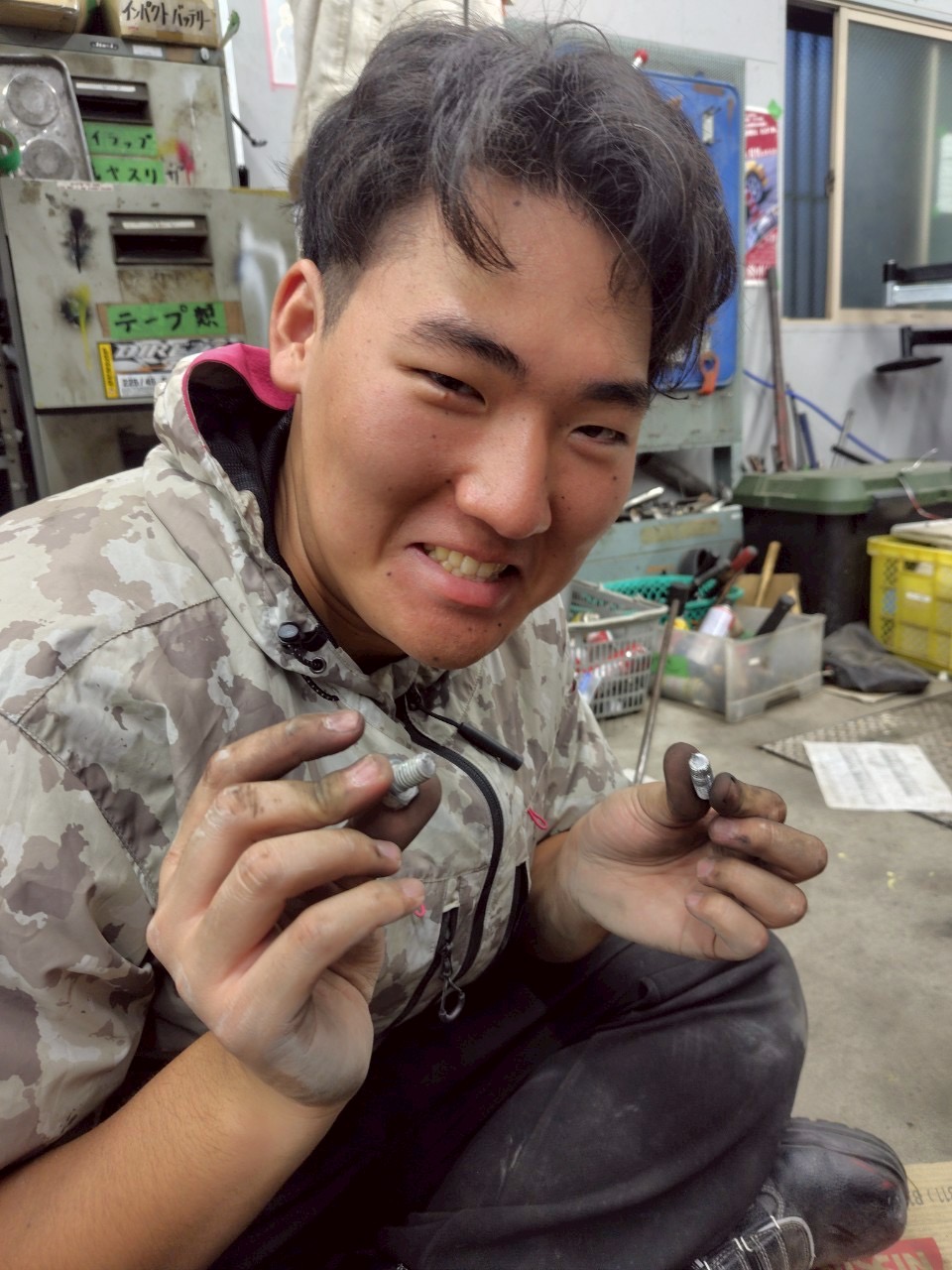 田原は1年きっての整備マスターです。出身高校は栄東高等学校。高校時代はアメリカンフットボールをしていたそうで、持ち前のパワーで整備をスイスイ進めます。